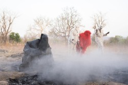 Ce nouveau masque est une passerelle entre le masque Mas Flé-Chabon crée à Fort de France en novembre 2024 liés à la situation socio-économique et politique de l’île et la démarche expérimentale que nous développons depuis 2024 autour du biochar/Charbon végétal comme amendement pour les sols à Kédougou au Sénégal.